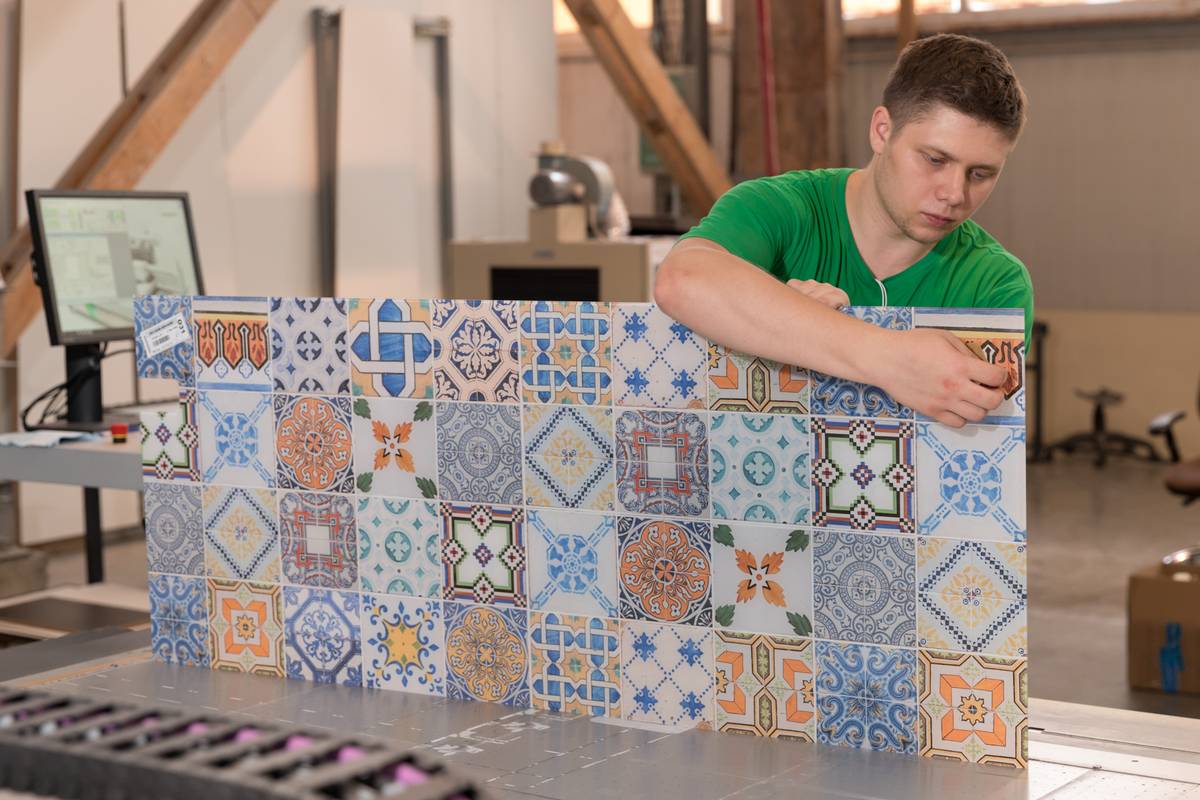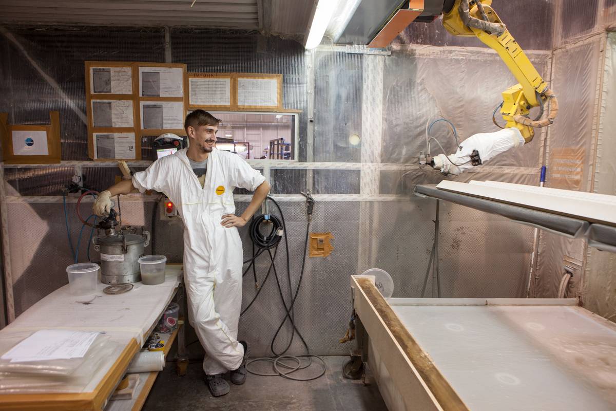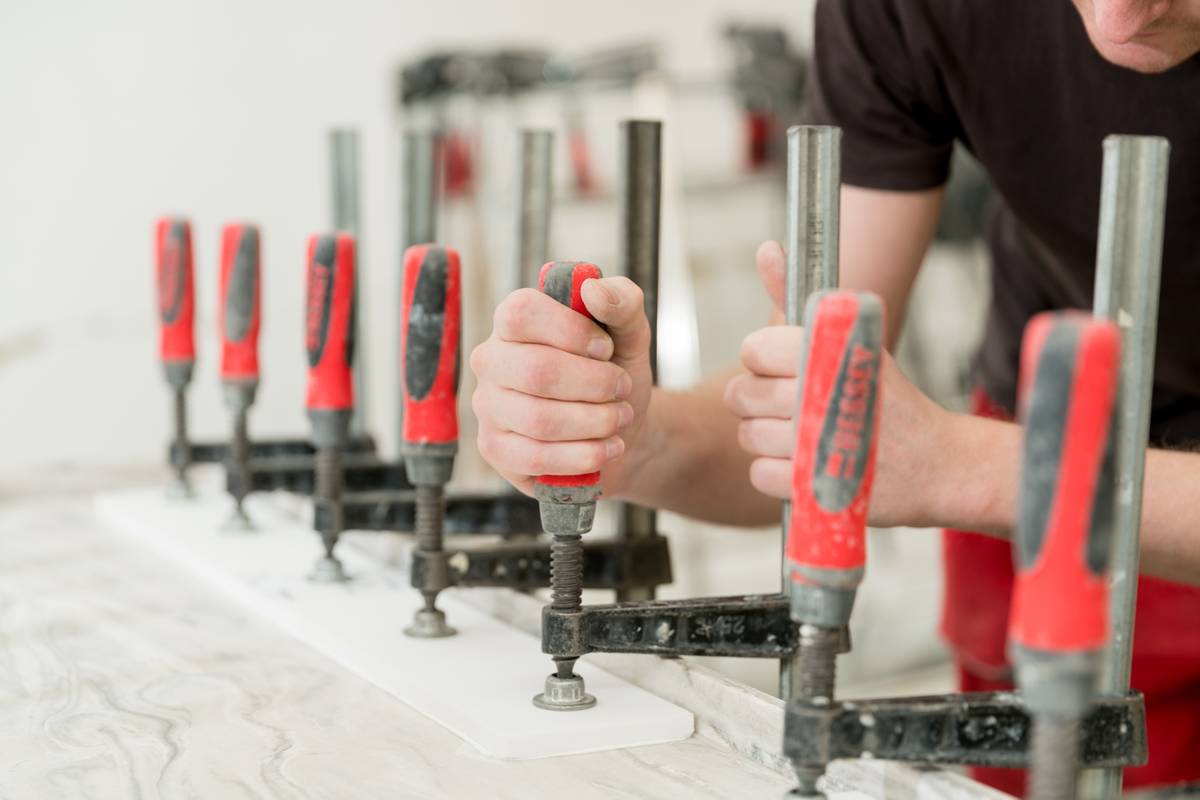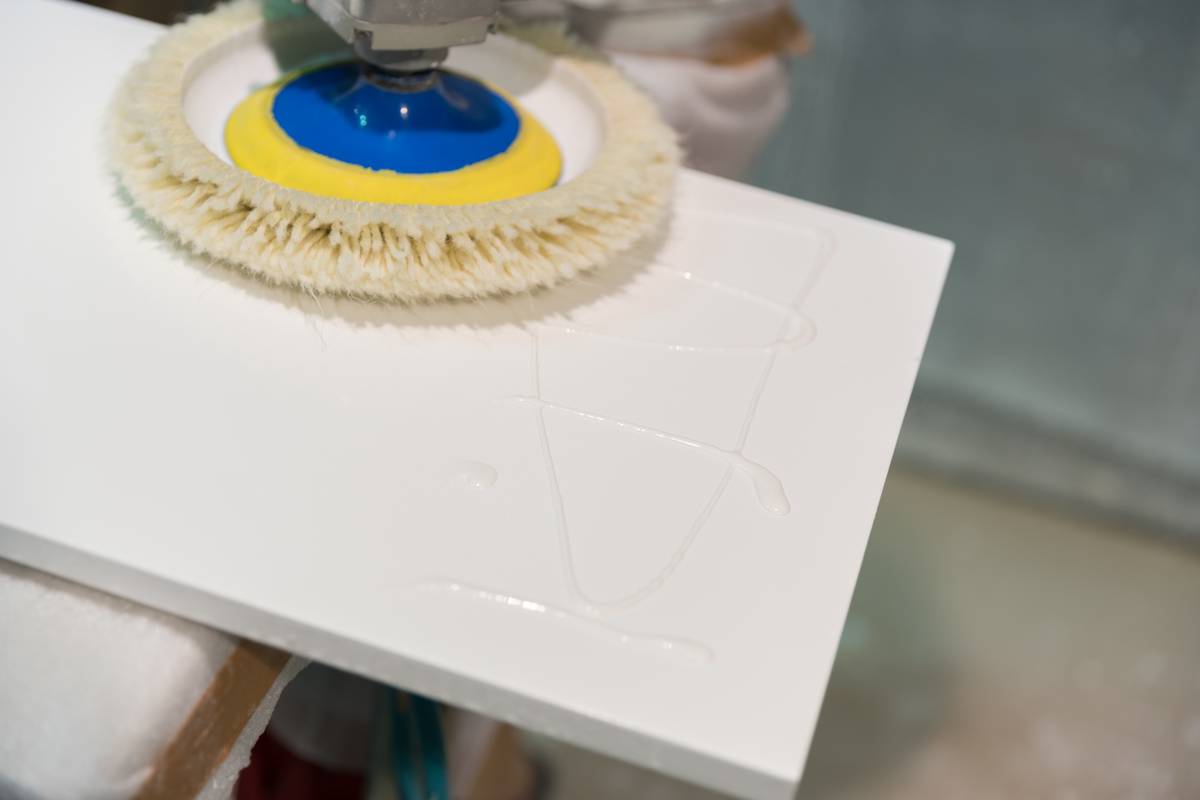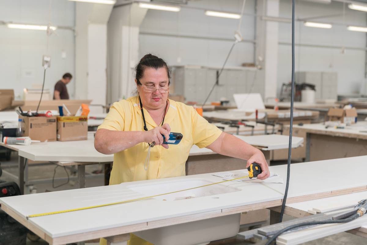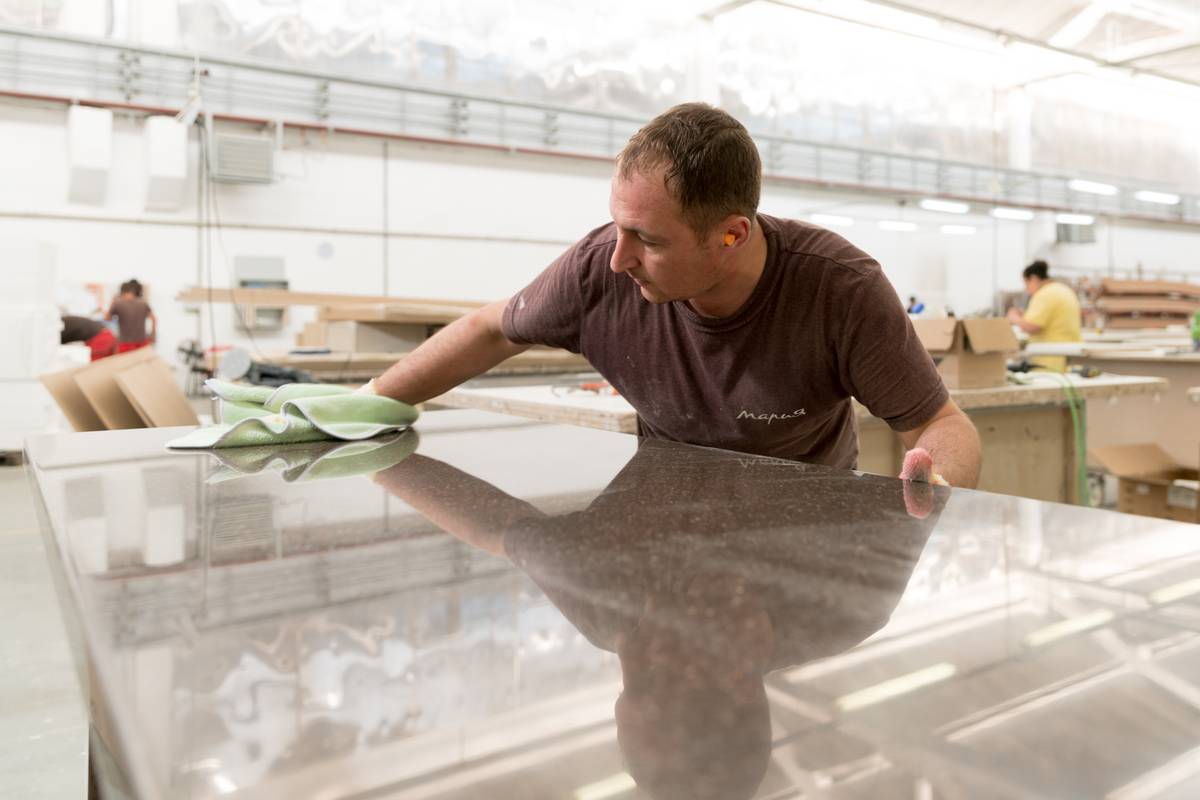 "Sculptors" produce more than 1,500 artificial stone countertops every month. More than 80% of the work is done by hand.