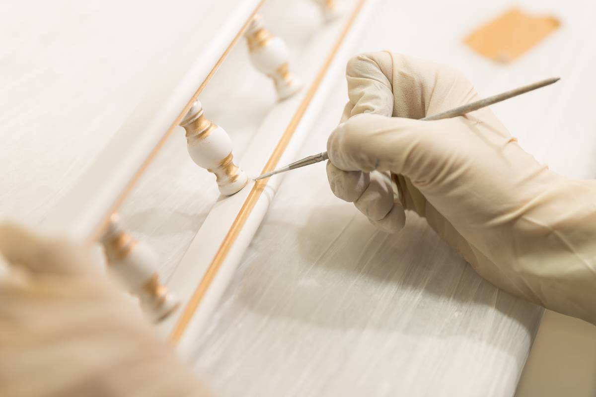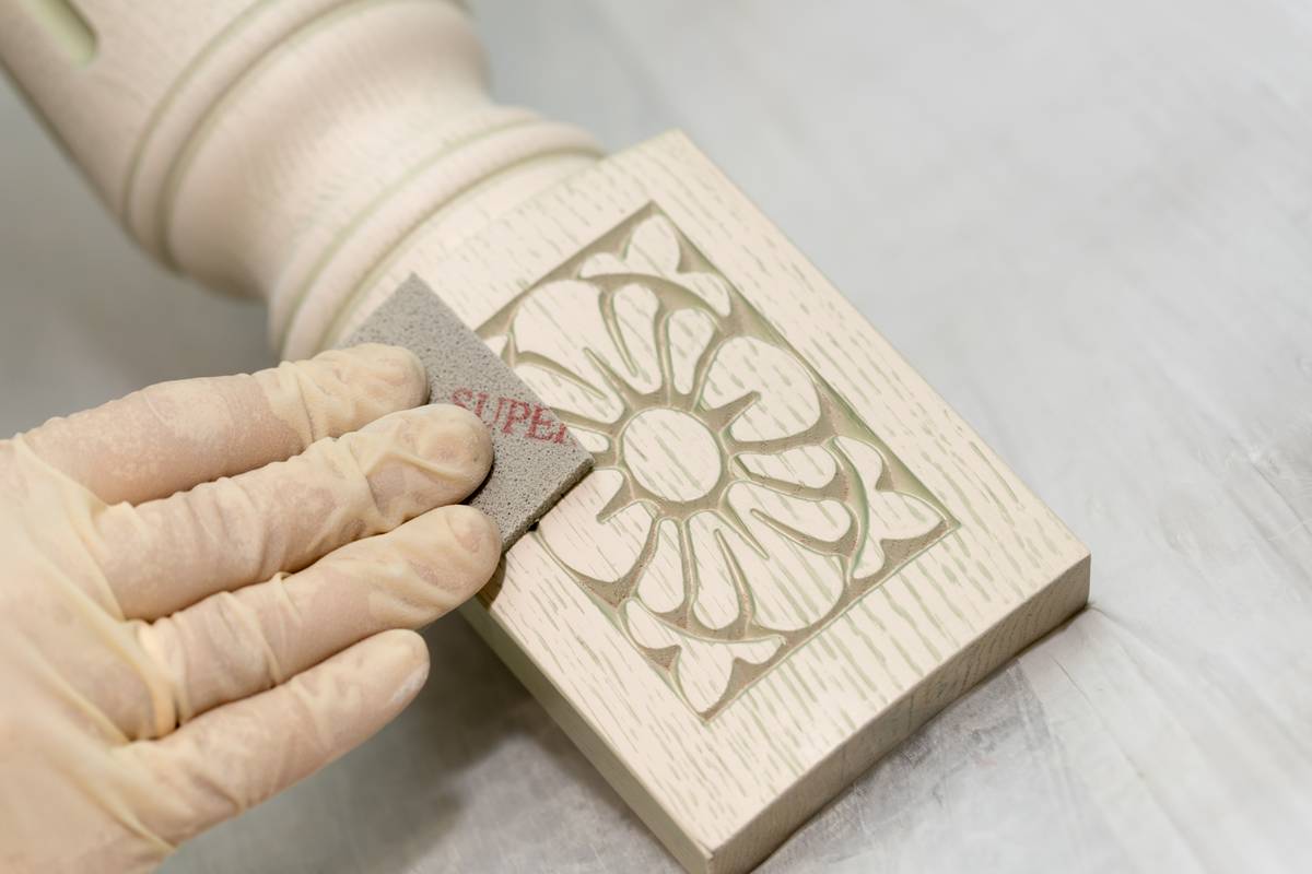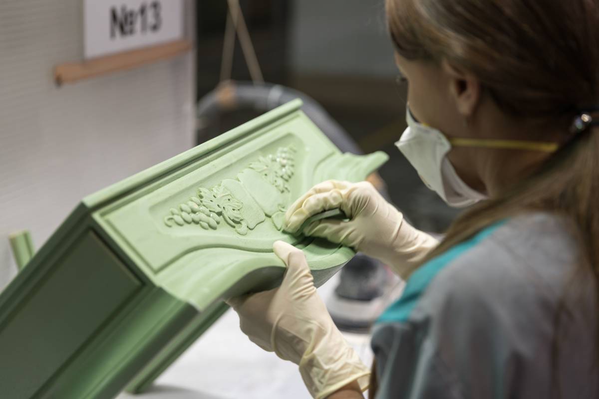 The future is already here: robots and people create beauty together at the factory. Solid wood facades, as well as all wooden elements and dining groups, are brought from Italy, and at the factory in Saratov they are polished, primed and decorated with paint, varnish or patina. MDF facades go through the same production stages. In order to get the same tone on all parts of one kitchen, the paint is applied by a robot. Even "Maria"'s Italian partners, who come here on excursions, admire its “skill”. Then the kitchen parts are hand-painted by artists. They are trained at the factory. They study for six months before they are entrusted with painting an entire kitchen.