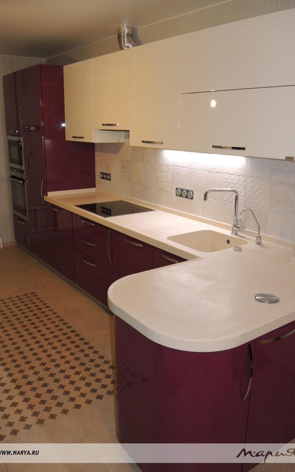 Опытные дизайнеры Компании «Мария» умело используют палитру оттенков бордо в своих проектах. Они помогут создать элегантную и практичную обстановку на кухне.